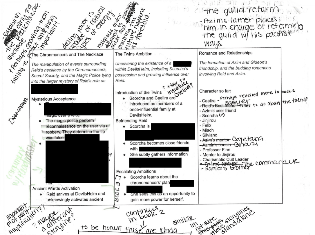 I spent the following weeks going back through the manuscript. Ctrl+F. Rereading chapters. Taking notes on when he appeared, what he said, what readers would know about him by this point. Cross-referencing with my spreadsheet, my outline, my notes.
